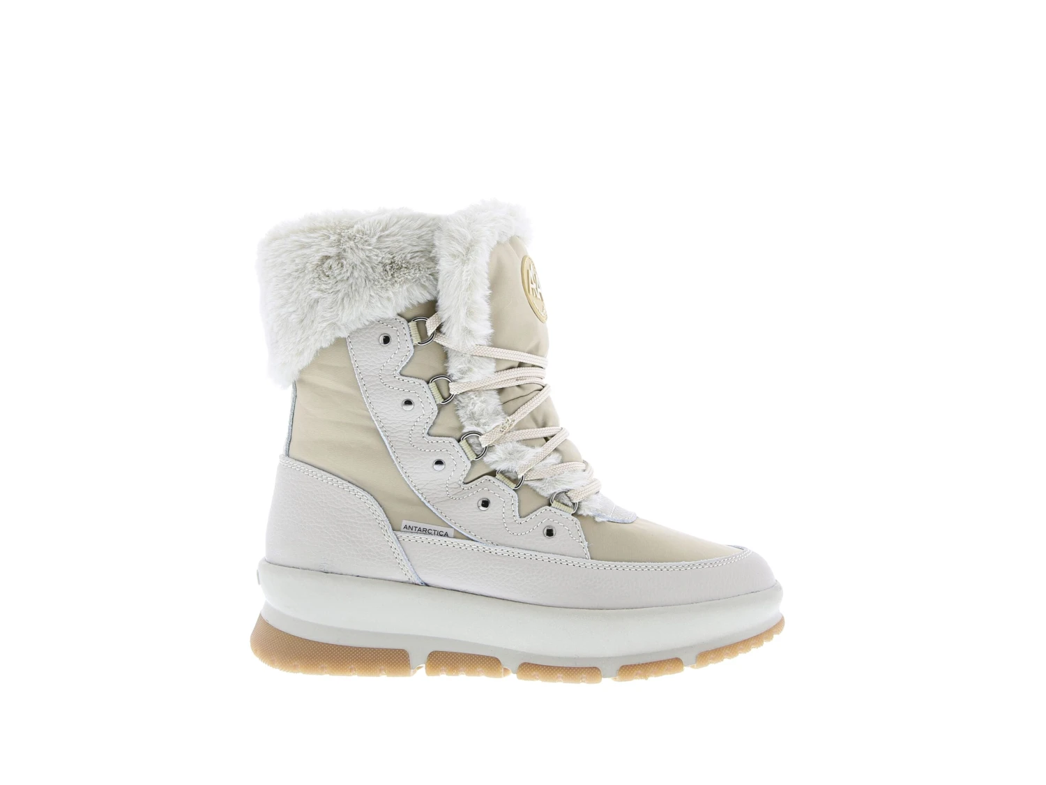 De Antarctica 8699 is een veterboot voor dames. De snowboot heeft een synthethisch lederen upper met polyester en een handige veter om de gewenste enkelomvang te bepalen. De 8699 heeft een decoratieve boord en voering van synthetisch wol.