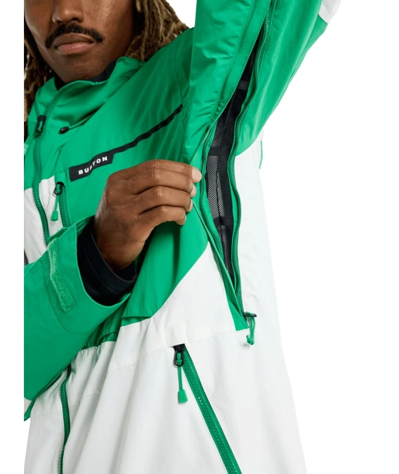 De Burton M Peasy 2L Jacket is jouw antwoord op alle weersomstandigheden van de straat tot de sneeuw! Deze lichtgewicht jas is gemaakt van DRYRIDE™ 2-Layer Nylon Tactel Fabric, een materiaal dat zeer ademend is, waterafstotend en snel droogt. De jas is ook voorzien van ventilatieritsen om open te zetten tijdens warme omstandigheden of intense inspanning. Een sneeuwvanger zorgt ervoor dat de warmte binnen blijft en de sneeuw buiten. Een verstelbare capuchon beschermt je tegen wind, regen en sneeuw. Zakken met ritsen zorgen ervoor dat je je belangrijke spullen kunt opbergen. Met deze fijne, lichte jas ben jij on trend en kun je overal naartoe!