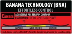 De Gnu RCC3 is een echte all-mountain performer met een bijna volledige camber opbouw, de C3. Jarenlang had dit board de C2 hybride rocker erin zitten, maar sinds een tijdje net wat spannender met deze meer camber dominante vorm. Het board heeft een houten kern, met een mix van 3 houtsoorten, die omlegd is met een 2-laags en 3 laags glasvezel. Dit geeft een goede mix tussen grip en stabiliteit , maar toch ook nog wat vrijheid voor een freestyle truc. De staalkanten zijn gegolfd, zodat je zelfs op de hardste piste je grip behoudt. Magnetraction noemen ze dit. De base is van sintered materiaal wat je het beste glijvermogen geeft en niet snel een beschadiging op loopt. De print is weer een echte Gnu graphic, Lekker trippy!