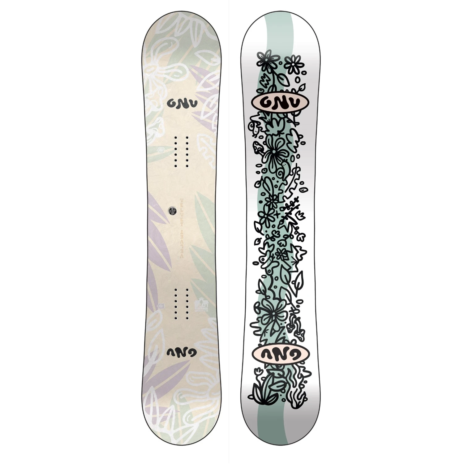 De Gnu Velvet is een mooi board in de middenklasse. Door de hybride shape is alles makkelijk. Een ollie, wat freestyle trucjes, lekker bochten carven, wat switch rijden. Ga je gang! Het board heeft een gemiddelde stijfheid wat hem ook bij hoger tempo voldoende stabiliteit geeft. Niet te serieus, het moet wel leuk blijven, dat snowboarden. De topsheet is hard waardoor deze minder snel beschadigd en het lekker lang meegaat. Door de assymetrie is er meer gelijkheid in de bocht op je hielen als op je tenen. En gelijkheid daar houden we van in deze tijd. Heel handig en best uniek. Een frisse Gnu graphic, met een artistieke draai, maakt het board compleet. het board heeft in zijn jaren dat het in de lijn zit een grote groep tevreden gebruikers gekregen.Â