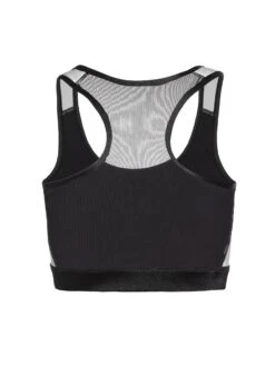 Deze sportbeha met uitneembare cups is aan de voorzijde jersey gevoerd en heeft een achterpaneel van transparant powermesh. De tailleband is van satijn tricot en de voorzijde heeft glanzende foliestreepprinten langs de paneelnaden. De BH is mooi te combineren met de Goldbergh trainingsbroek Zuzana.