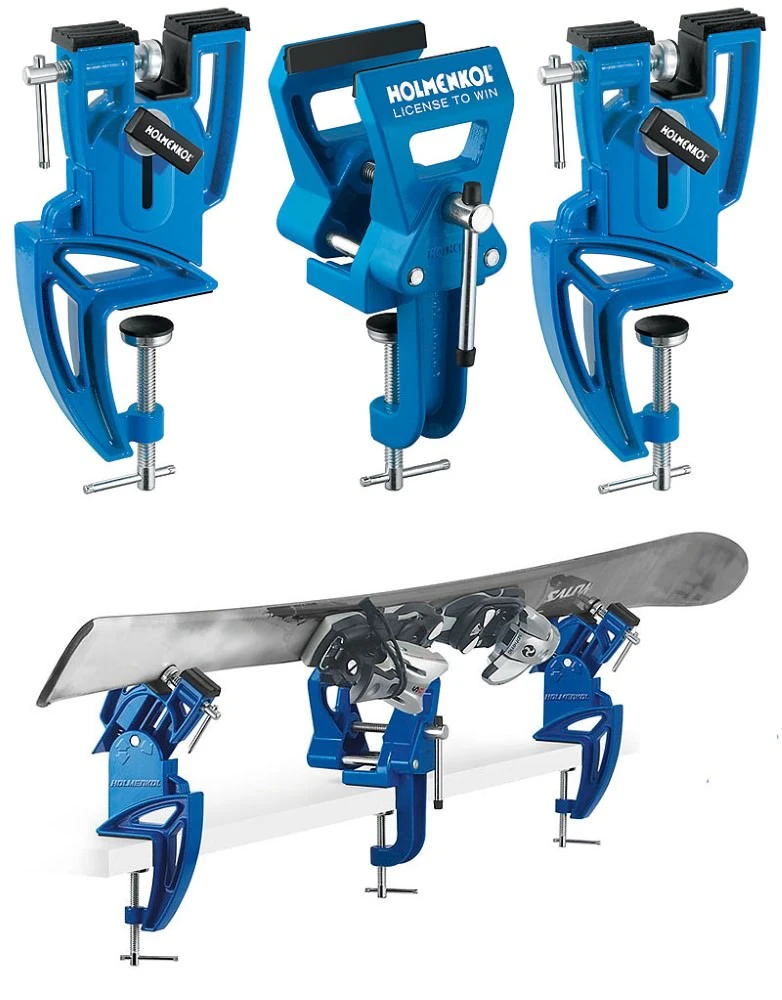 De Holmenkol Super Pro Plus Worldcup is een skiklemmenset voor de gevorderde tot expert waxer en slijper. De set is traploos verstelbaar in een hoek van 90 tot 45 graden. Zo kan je eenvoudig en zeer precies de staalkanten bewerken. Het slijtvaste antislip rubber houdt de ski’s vrij van beschadigingen. De schroefbare klemmen zijn de ski’s muurvast te zetten. Wilt u professioneel waxen en slijpen? Dan is dit wel d
