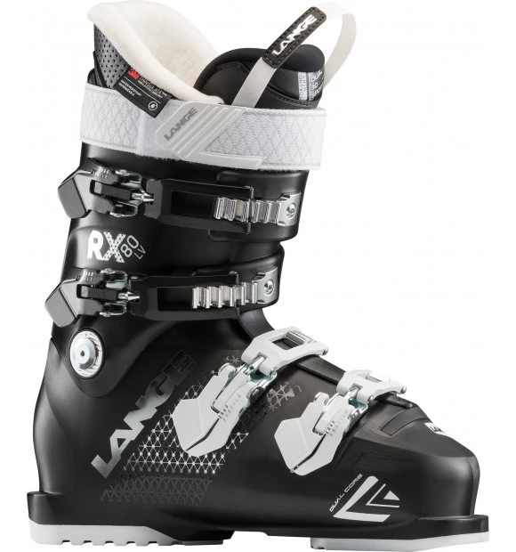 De Lange RX 80 L.V. is een niet al te stugge schoen voor de dame met smalle voeten. Gebouwd op het platform van de RS schoen, is dit een schoen die smalle schoenen beschikbaar maakt voor dames die geen hoge flex nodig hebben. De schoen is gemaakt met een Dual Core Sandwich constructie, zodat de juiste materialen op de juiste plek zitten voor een dynamisch gevoel en directere krachtoverbrenging. De Dual 3D Liner Sport met thinsulate isolatie is lekker warm en is volledig thermisch vervormbaar, om het comfort te garanderen. Verder beschikt de schoen over verwisselbare pads, stelmogelijkheden in de Canting en een 35 mm brede strap. De schoen is echt gemaakt voor dames, met een iets lagere cuff aan de achterkant om de dame meer comfort en een natuurlijkere houding te bieden.