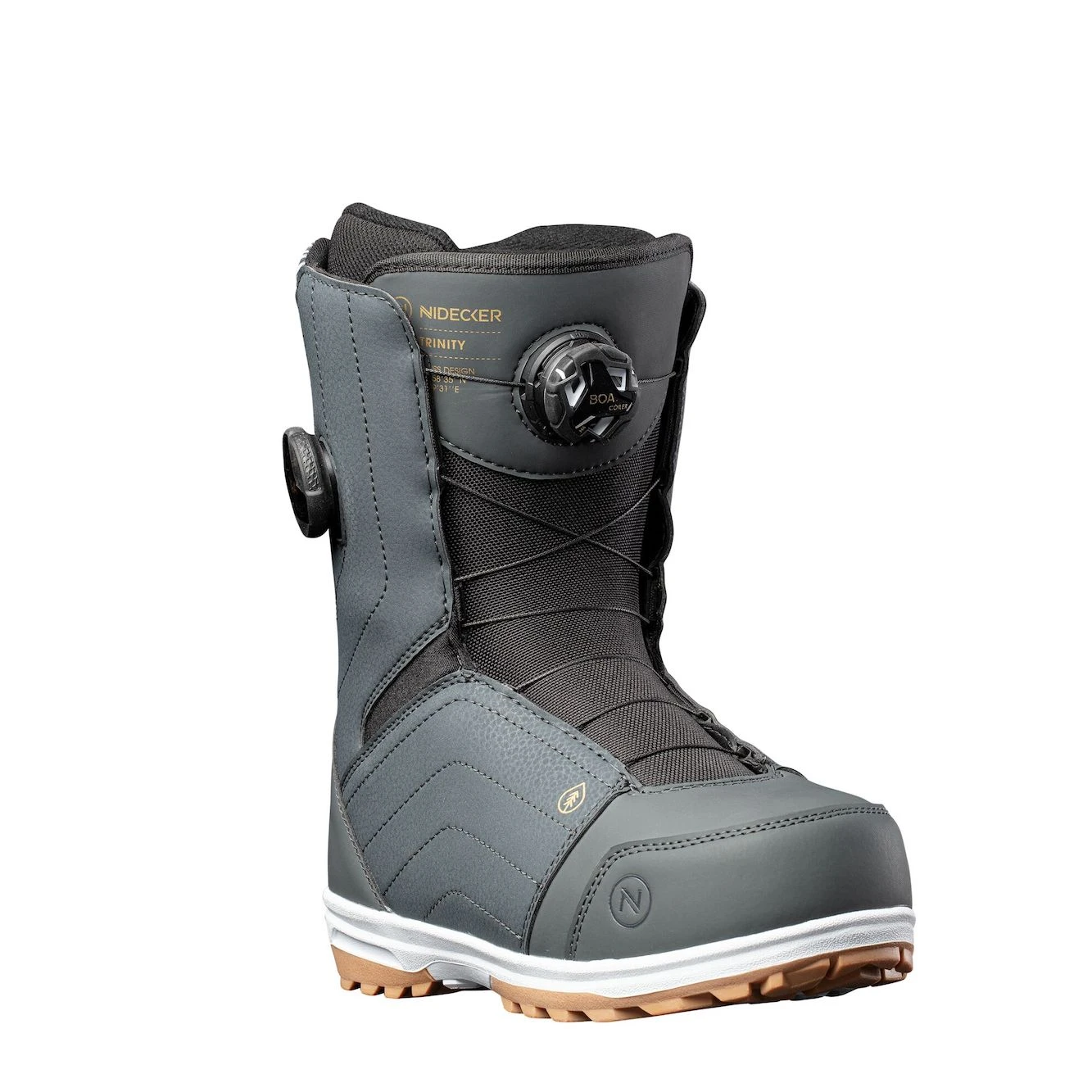 De Trinity combineert geweldige technologie en comfort in een geweldig uitziende laars die perfect is voor progressie. Gebouwd rond onze unieke FlowFit leest, past hij gegarandeerd perfect in elke Nidecker two-strap of Flow speed-entry binding. Er zijn twee Boa-draaiknoppen zodat je het bovenste en onderste gedeelte apart kunt aandraaien, en dankzij de nieuwste H4 Coiler™ en TX veters gaat het proces sneller en soepeler dan ooit tevoren. Een B.F.T. Gravity-zool zorgt voor betrouwbare tractie in koude omgevingen – of je nu een bergkam beklimt of gewoon over een ijzige parkeerplaats loopt – en samen met een 3D-gevormde voering en voetbed blijven je voeten de hele dag comfortabel. De Trinity biedt dit alles voor een scherpe prijs, terwijl de gemiddelde flex geschikt is voor een breed scala aan rijstijlen en -capaciteiten.
