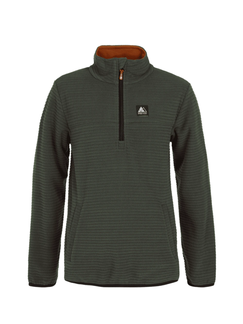De Protest B Prtseb Jr 1_4 Zip Top 2023 is een warme en stoere pully voor jongens. De pully is voorzien van een opstaande kraag, lange mouwen en korte ritssluiting bij de hals. De ultrazachte trui is gemaakt van goed ademend materiaal dat bovendien snel droogt. Hierdoor is de pully perfect als tweede kledinglaag tijdens het snowboarden of skiën.