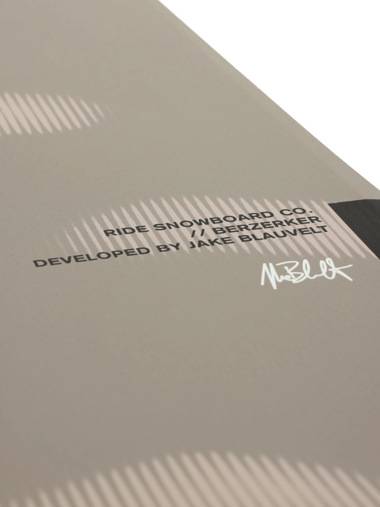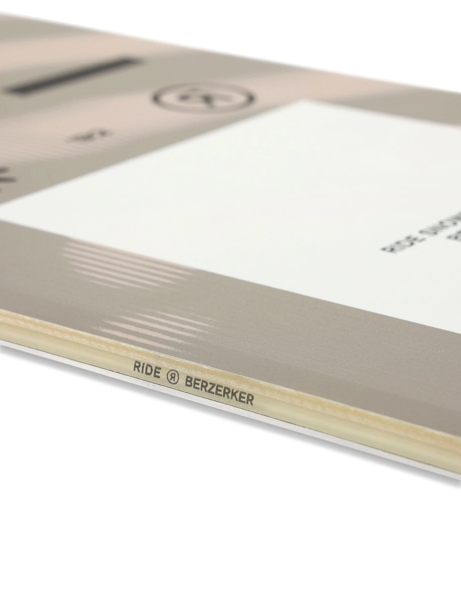 De Ride Berzerker is met zijn niet al te stijve directional vorm een goed all-round board. Alle ingrediënten zitten erin; grip, pop, stabiliteit en veel drijfvermogen. Je kan hier werkelijk alles mee. De Ride teamrijder Jake Blauvelt heeft met de ontwerpers een goed gebalanceerd board neergezet dat qua rij-eigenschappen goed aansluit, bij wat een hoop boarders willen; alles kunnen met 1 board, ongeacht de omstandigheden. Het is voorzien van een lichte houten kern met bamboe, die omlegd is met een 2-en een 3-laags glasvezel. Om dit board nog wat meer power te geven is er ook in de tail en de nose wat carbon verwerkt. De sidewalls zijn van goed dempend materiaal, zodat je ongestoord door je bocht heen carved. De base is sintered dus snel en hard. De 4-voudige radius maakt je bocht tot een sensatie, versnellen tot aan het einde. De keuze wordt nog makkelijk gemaakt, zeker met zo`n graphic. Strak en tijdloos! het board is ten opzicht van vorig jaar niet veranderd. Ze waren er tevreden over en wij ook!