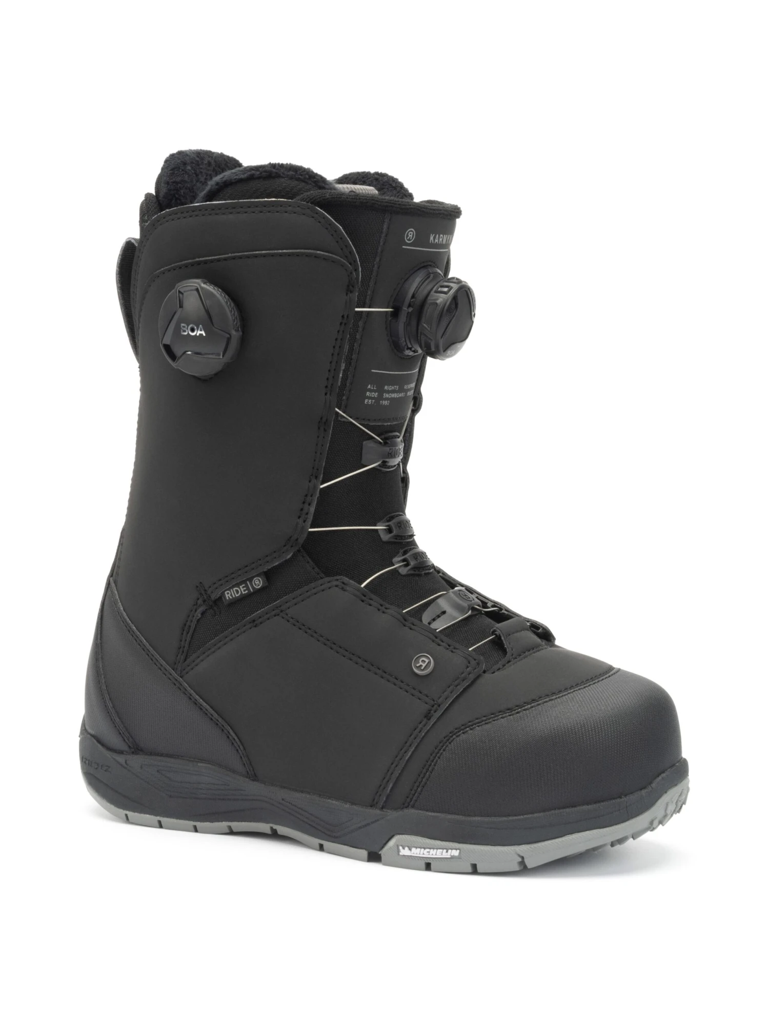 Met de Ride Karmyn Zonal heb je een boot met een gesplitstse Boa sluiting en een gemiddelde flex. De ‘zonale” Boa geeft je de mogelijkheid om je voet en onderbeen vast te zetten, los van elkaar. Wil je je voet wat losser en je onderbeen wat strakker? Het kan allemaal. Door de buitenschoen in twee zones op te delen, blijft de schoen mooi in vorm tijdens het flexen. De binnenschoen is lekker compact bij de hiel en is aanpasbaar aan je voet. Dus drukpunten zijn verleden tijd. Er is wat meer ruimte over gelaten bij de kuit om het comfort nog at te vergroten. De zool geeft een goede demping tijdens het boarden, een een fijne grip tijdens het lopen. Klinkt als een goed complete boot, toch?