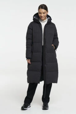De Tenson W Shanna Down Coat is een stijlvolle lange dons jas met capuchon.