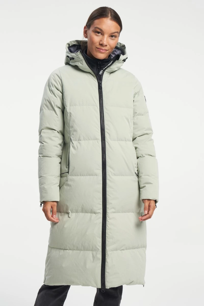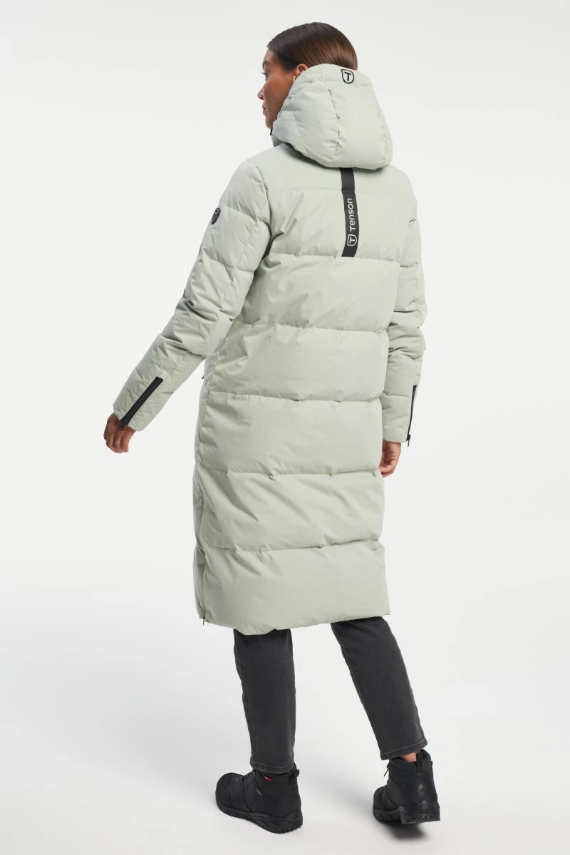 Tenson W Shanna Down Coat Jackets is een stijlvolle lange dons jas met capuchon.